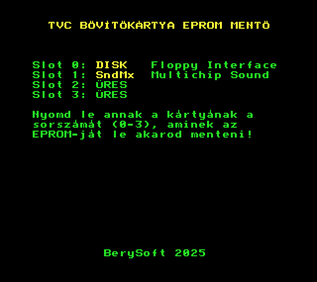 Leírás: TV-Computer bővítőkártya EPROM mentő program (csak 8kb-ot!)