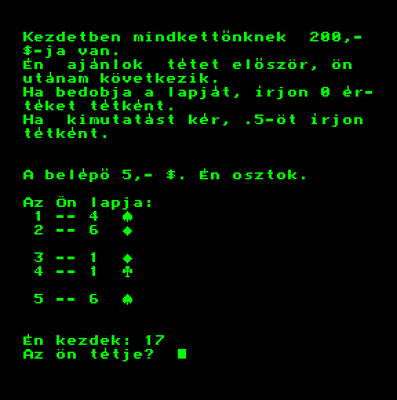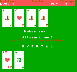 | VT Bridzs (v3) Készítette: Videoton(????) Típus: Játék - Logikai - Kártya Fájlok száma: 1 Letöltés: vtbridv3.zip Leírás: A kártyajáték gépi megvalósítása. |