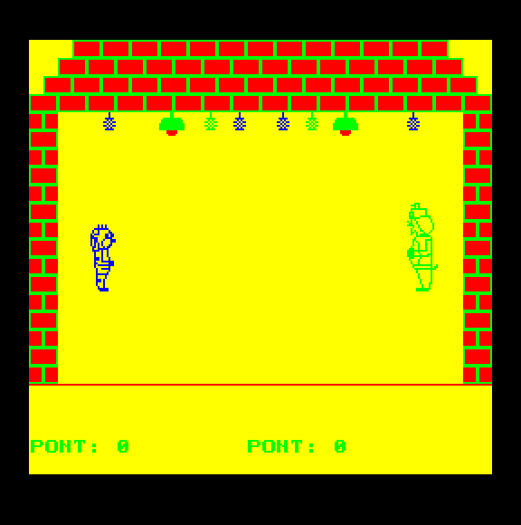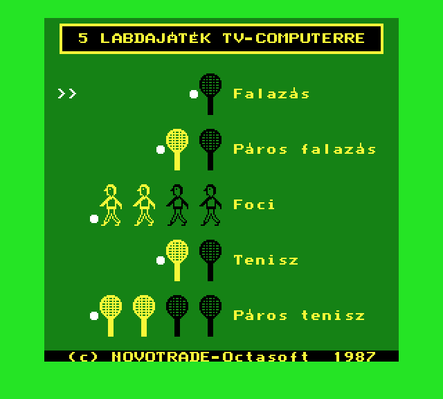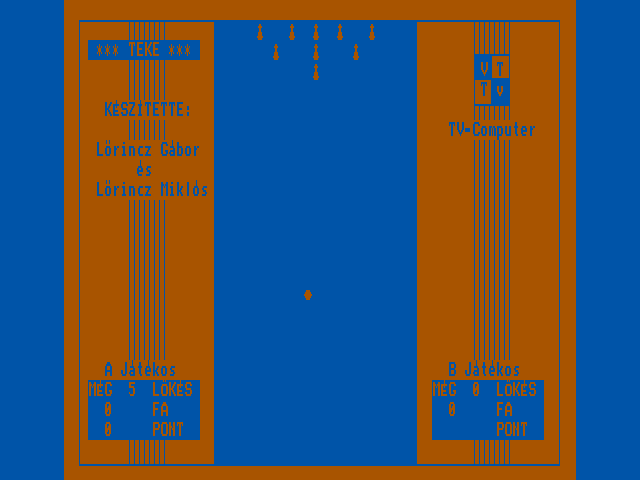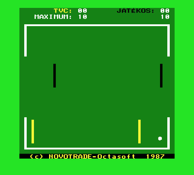 | 5 labdajáték (f3) Készítette: Tamási László(1987) Típus: Játék - Ügyességi - Pong típusú Fájlok száma: 3 Letöltés: 5labdajatek.zip Leírás: A klasszikus Pong játék TVC-s megvalósítása több játékossal |
