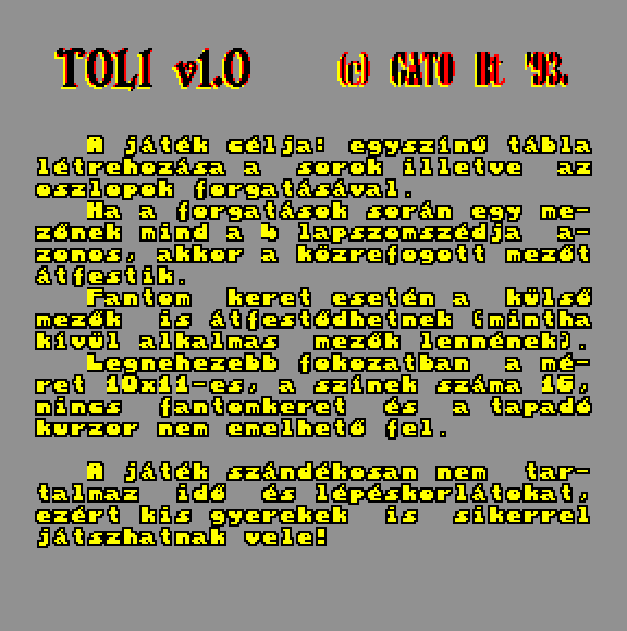 | VPL Demo Készítette: Gutbrod András (Gato Bt.)(1991) Típus: Demo - Programdemo Fájlok száma: 1 Letöltés: demo02.zip Leírás: Képújság kiegészítő modul demó verzió, Újság 02 melléklete |