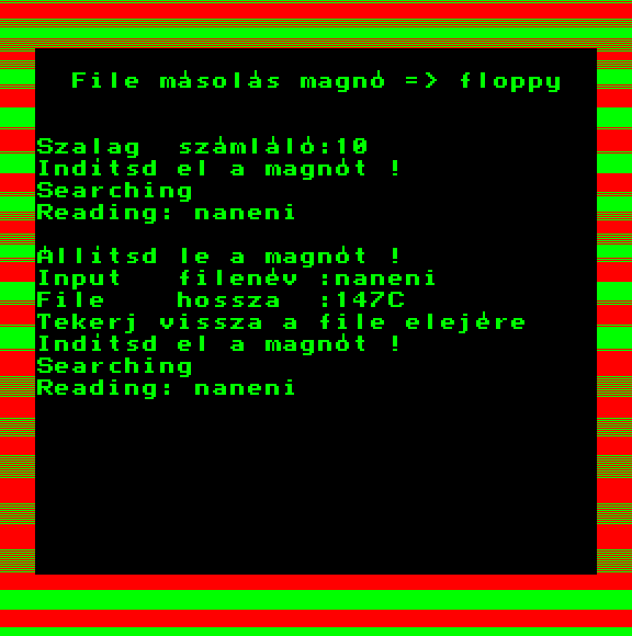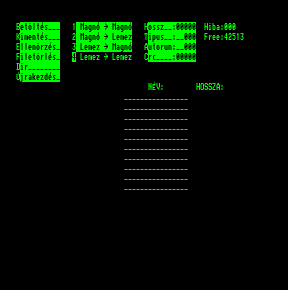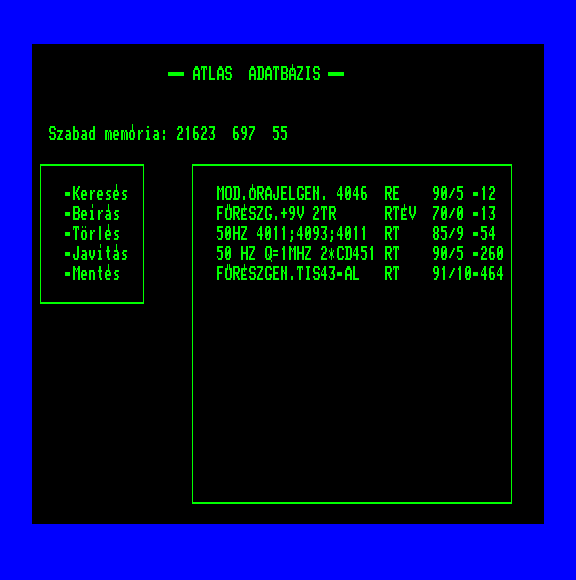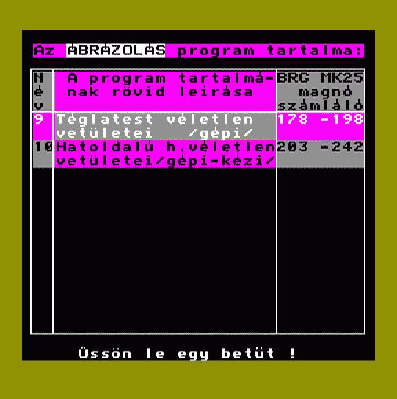 | Őrjárat (Eredeti 1 bites wav) Készítette: Takács Béla(????) Típus: Játék - Ügyességi - Lövöldözős Fájlok száma: (Unknown) Letöltés: orjarat1bit.zip Leírás: - |
