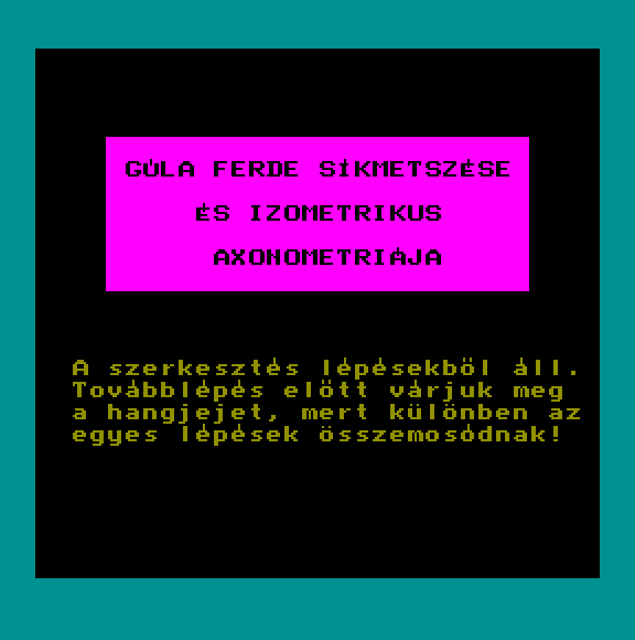 | Axonometria Készítette: Tasnádi Róbert (Cyprinus) (Szeged)(1988) Típus: Oktató - Matematika Fájlok száma: 1 Letöltés: axonometria.zip Leírás: - |