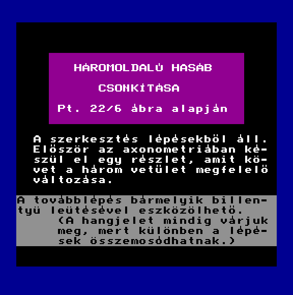 | Ábrázolás - 05 Háromoldalú hasáb csonkítása Készítette: Papp László(????) Típus: Oktató - Rajz Fájlok száma: 1 Letöltés: ab5.zip Leírás: Ábrázoló geometria oktató programok, szerintem nagyon jók. |