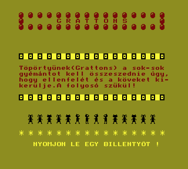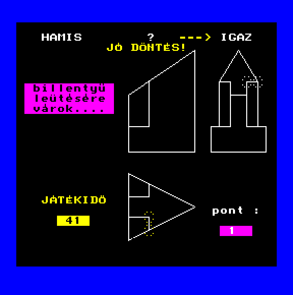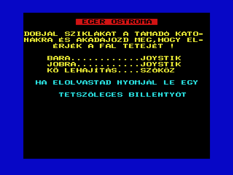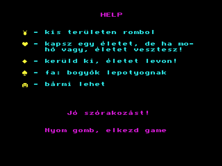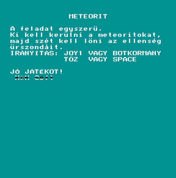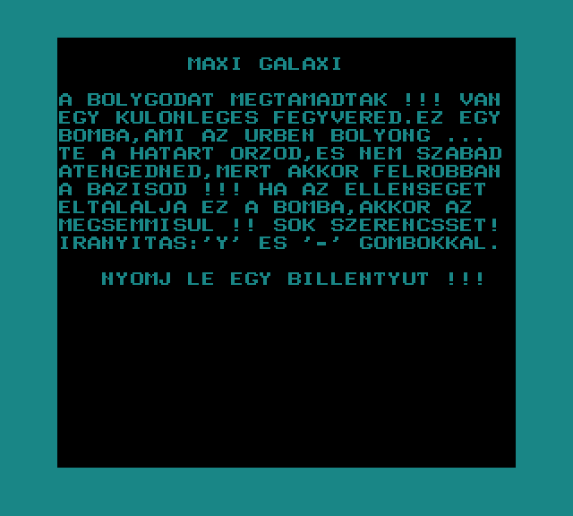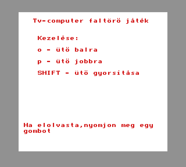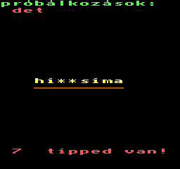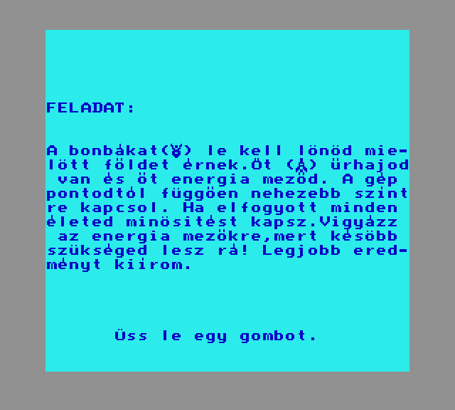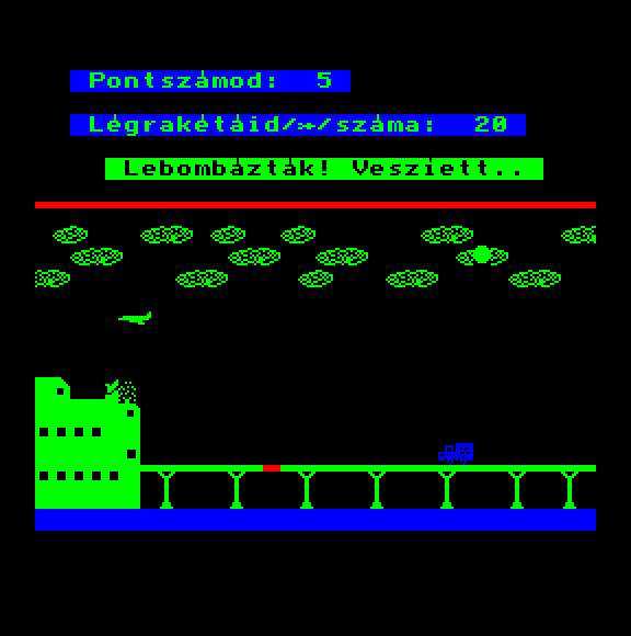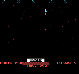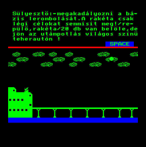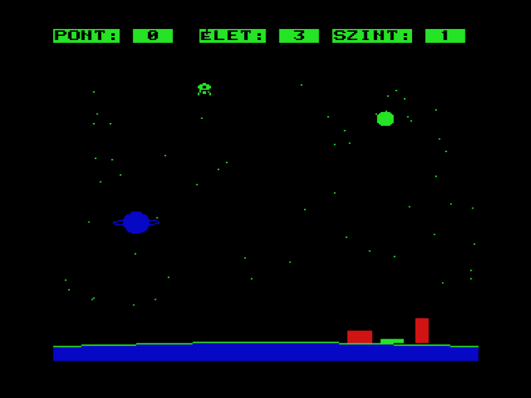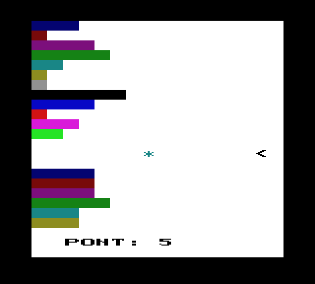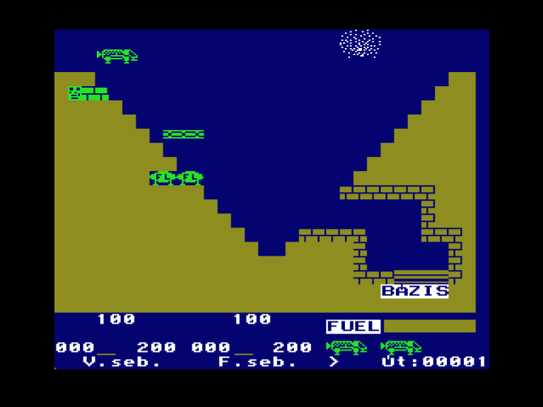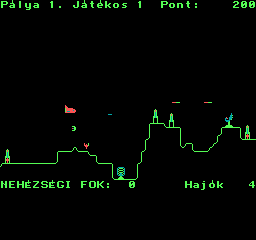 | Áttörés (v2) (f1) Készítette: Bit & Guy(????) Típus: Játék - Ügyességi - Defender típusú Fájlok száma: 1 Letöltés: attorv2.zip Leírás: Skramble klón.. Kezdőkép nélküli verzió |