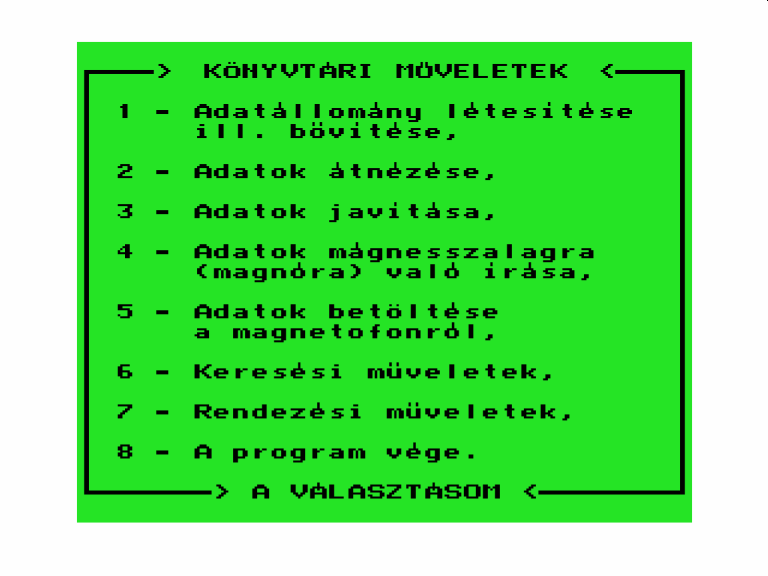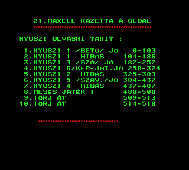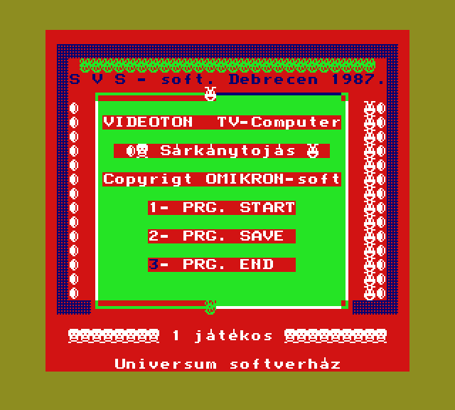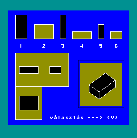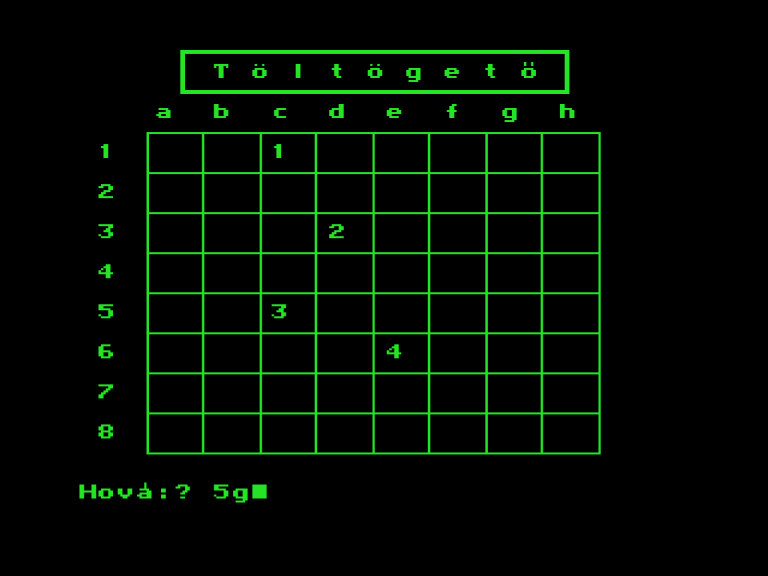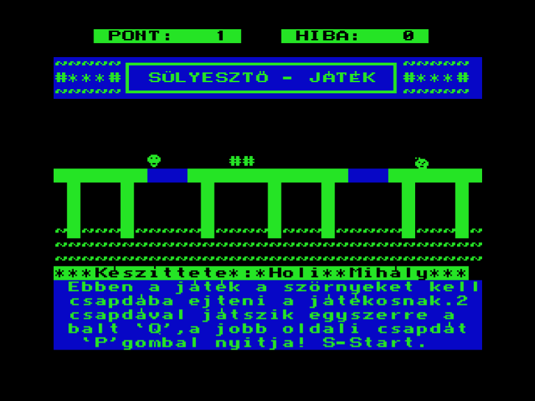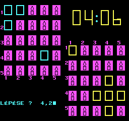 | 8 Játék Készítette: (Nem ismert)(????) Típus: Játék - Gyűjtemény Fájlok száma: 0 Letöltés: - Leírás: együtt is kiadott 8 db jaték, Awari, Béka (brekeke), Gombócfaló, Kígyó, Labirintus, Mastermind, Othello, Zene-zene-zene |