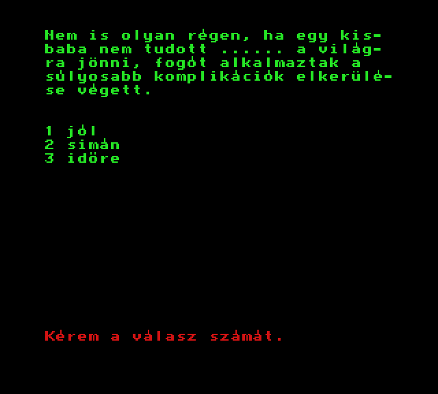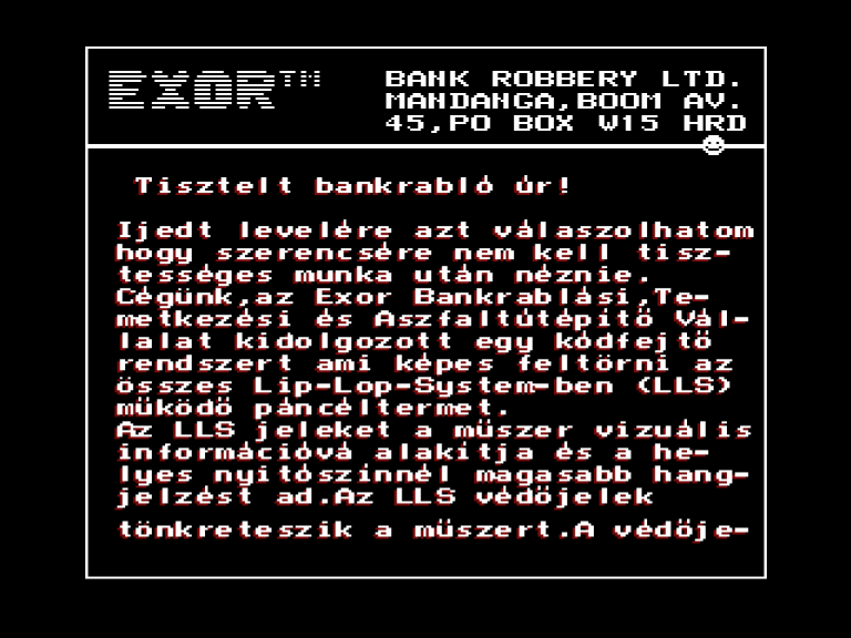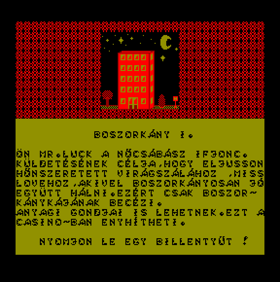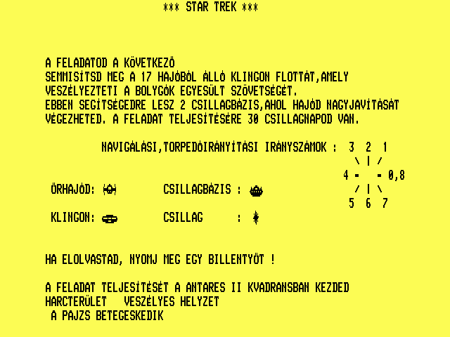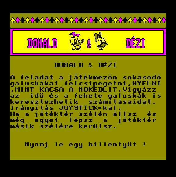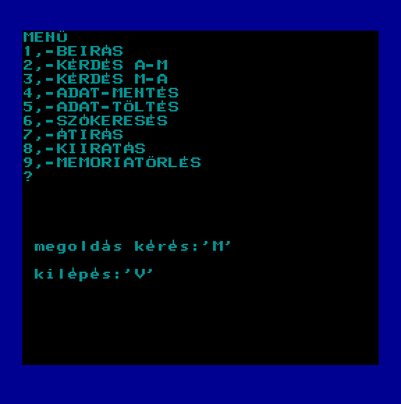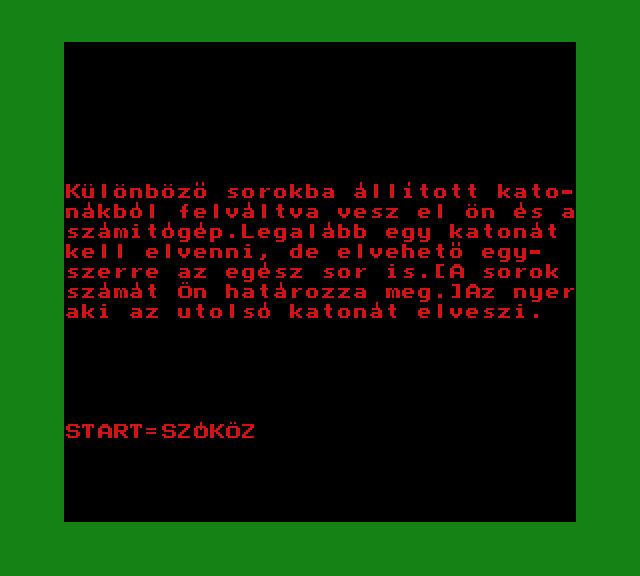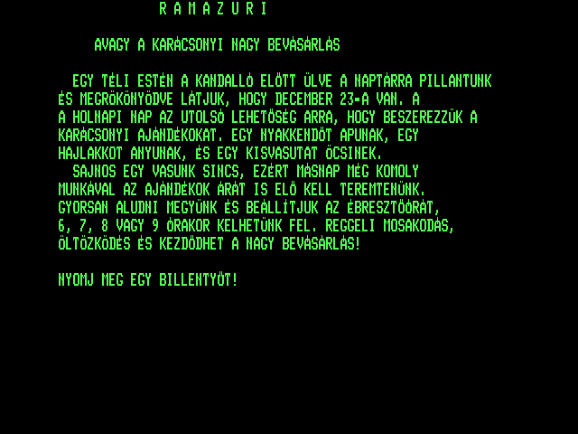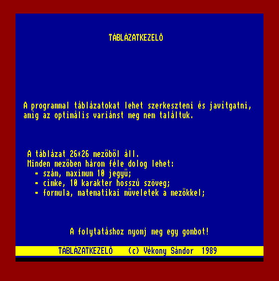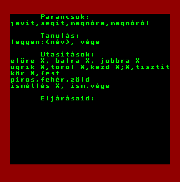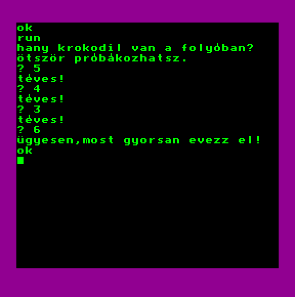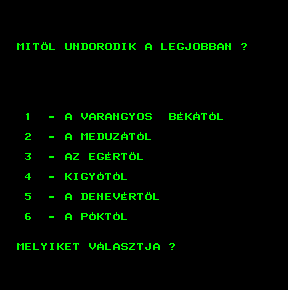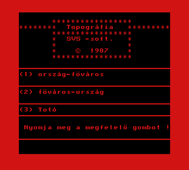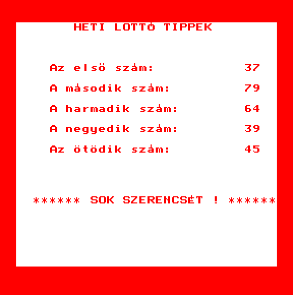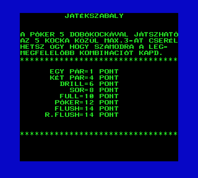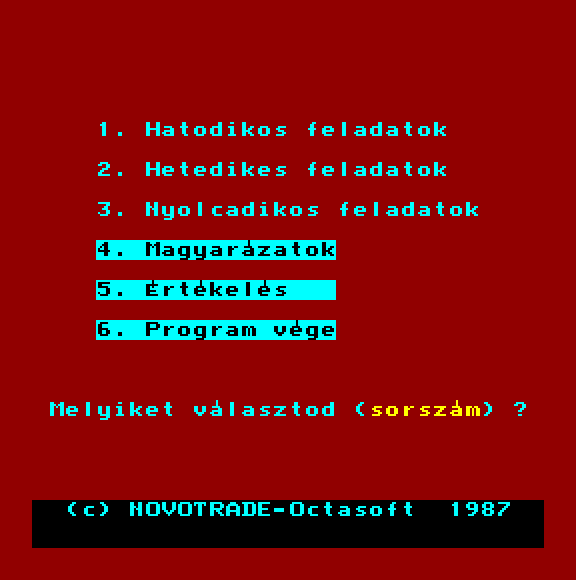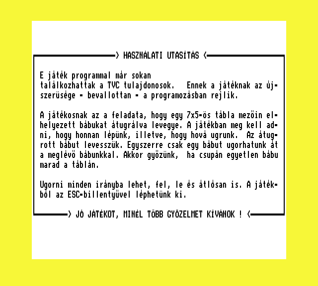 | A gyíkkirály (v2) Készítette: Agilar(1990) Típus: Játék - Szöveges kaland Fájlok száma: 1 Letöltés: agyikkiraly.zip Leírás: Választós kalandjáték, mint a korabeli lapozós könyvekben. |