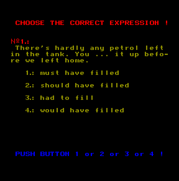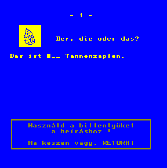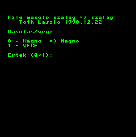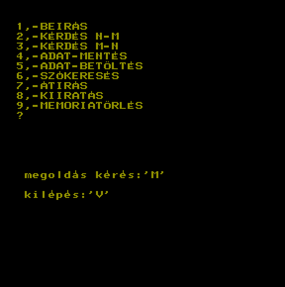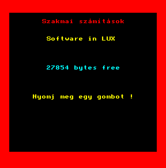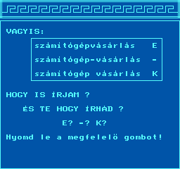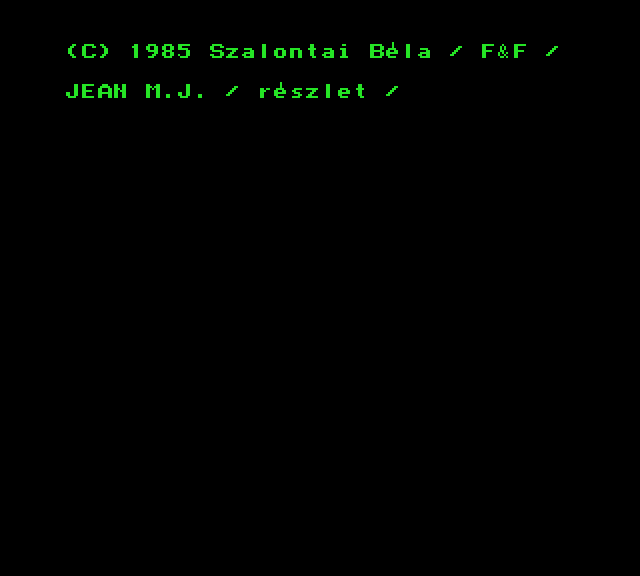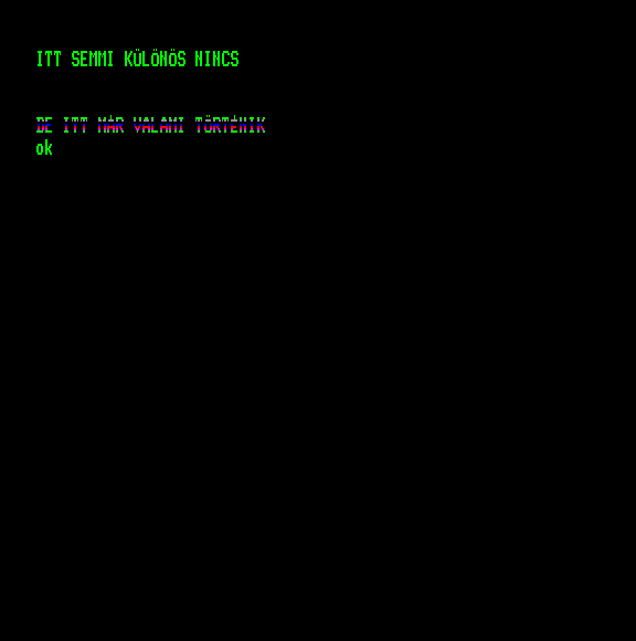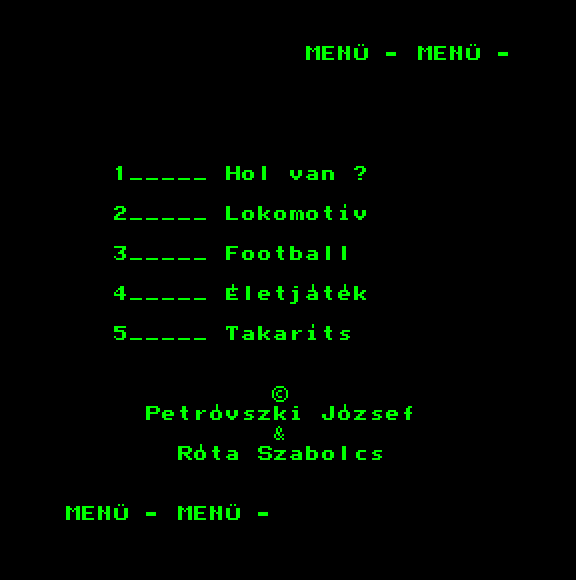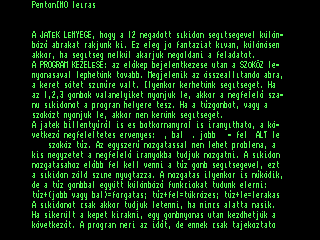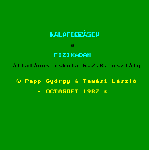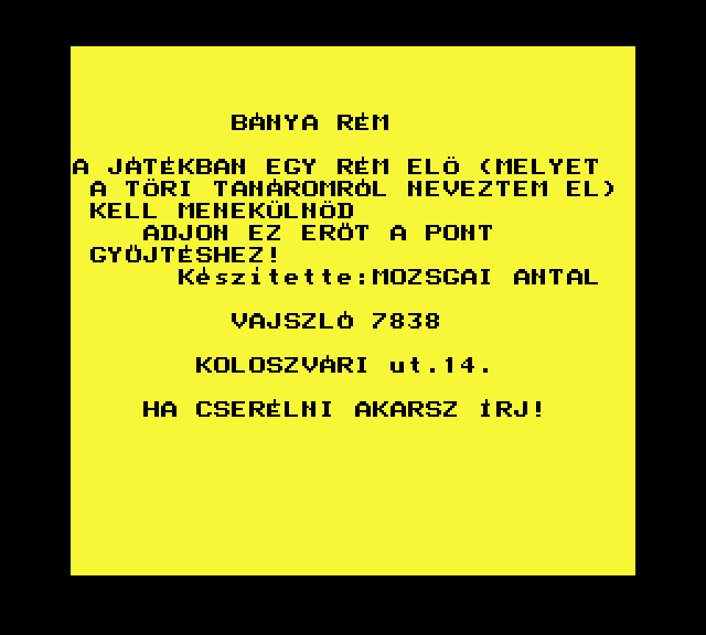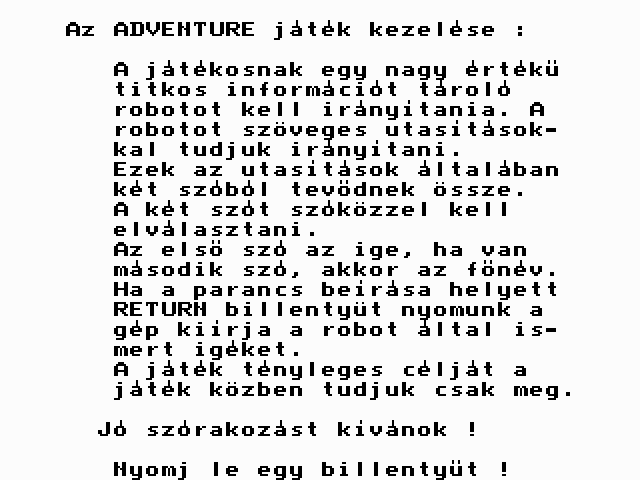 | Adventure Game Készítette: Juhász Tamás(1987) Típus: Játék - Szöveges kaland Fájlok száma: 1 Letöltés: adventure.zip Leírás: Több gépre is elkészült szöveges kalandjáték. |