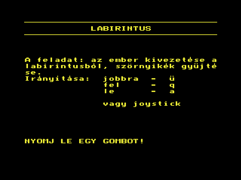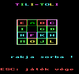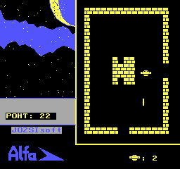 | Alfa (f2) Készítette: JÓZSIsoft(????) Típus: Játék - Ügyességi - Labirintusos Fájlok száma: 2 Letöltés: alfa.zip Leírás: Bolyongjál a labirintusban a csészeajjal, óvakodj a semmiből jövő lövedékektől, és szedj össze valamiket... |
