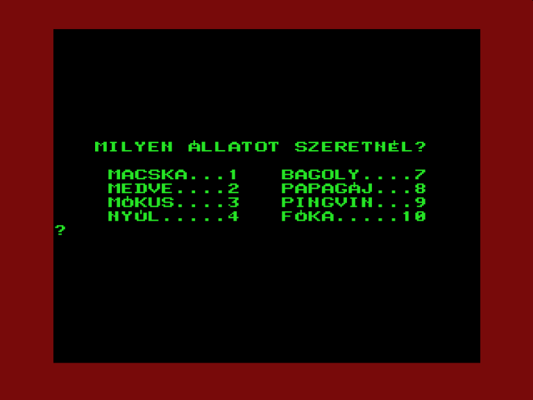 | Állatok Készítette: SP LTD (Losonczi Attila,Kozár Andor)(1986) Típus: Oktató - egyéb Fájlok száma: 1 Letöltés: allatok.zip Leírás: Állatrajzoló program, 6 nyelven |