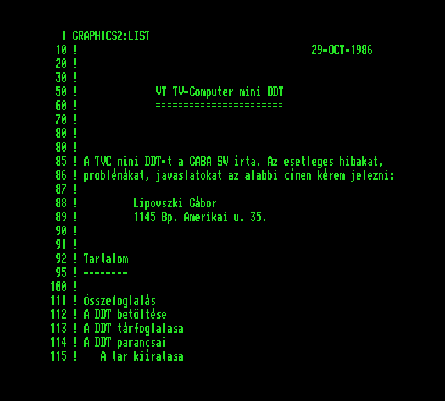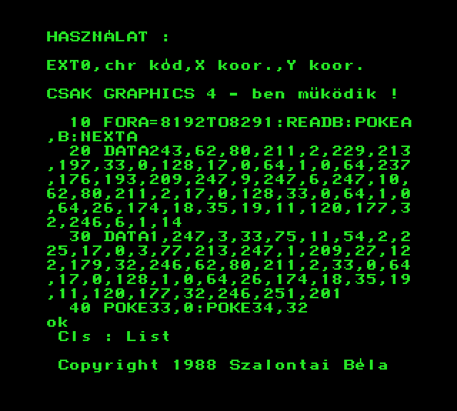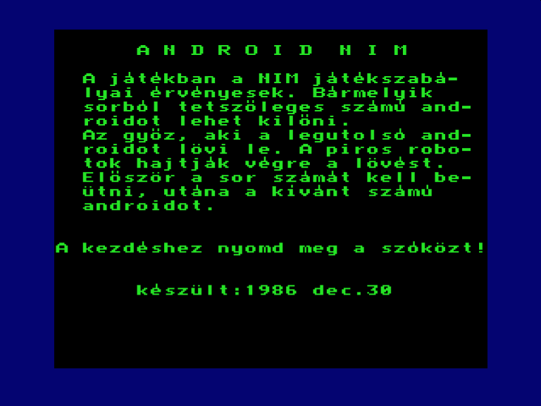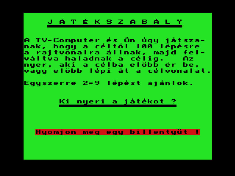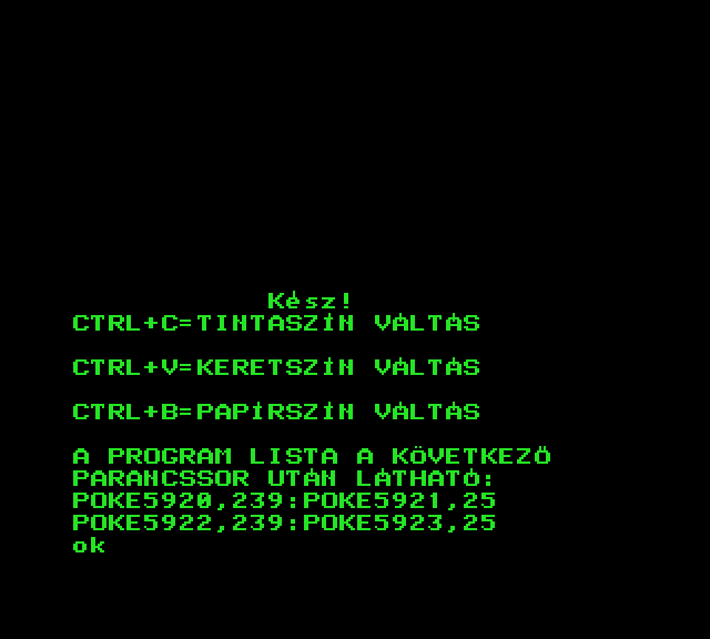 | Back to the Nature Készítette: nincs megjelölve szerző(????) Típus: Játék Fájlok száma: 1 Letöltés: naturaba.zip Leírás: A Commodore BASIC grafika lehetőségeit bemutató BASIC jaték TVC konverziója. |