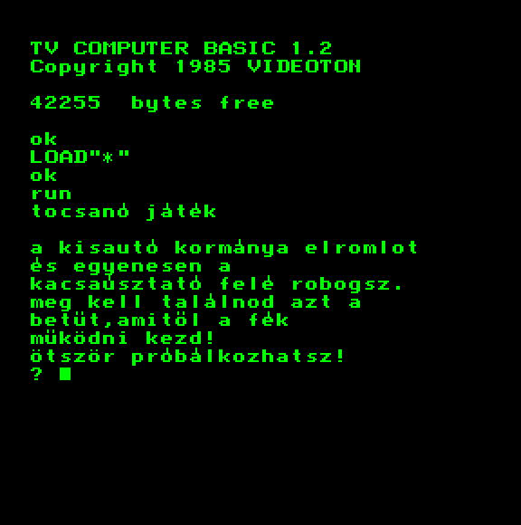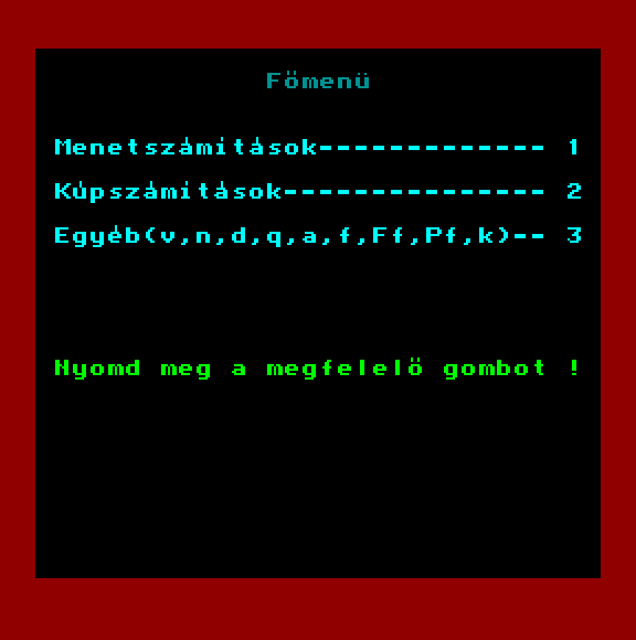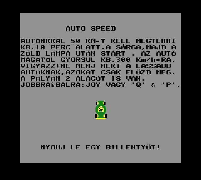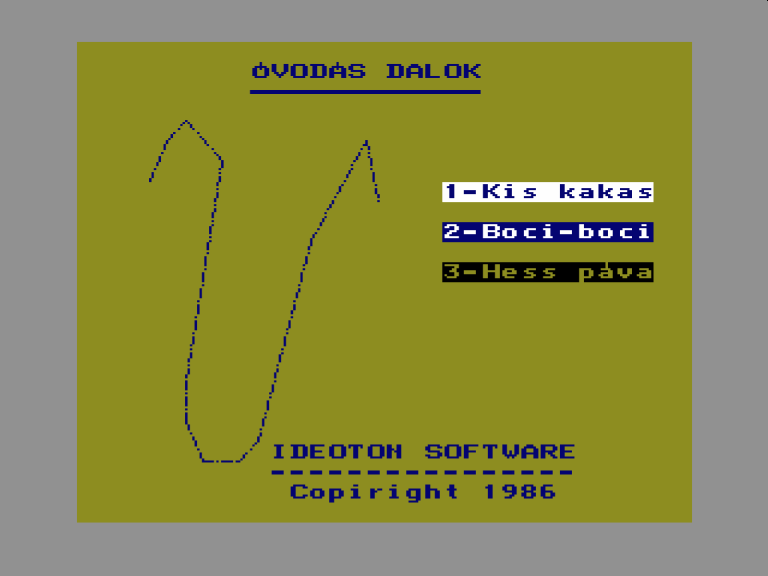 | Vezetés Készítette: King ec Software (Piret Endre)(1987) Típus: Játék - Ügyességi Fájlok száma: 1 Letöltés: vezetes.zip Leírás: Autóvezetés? vagy motorcsónak? A valósághűség még hagy kívánni valót maga után. |
