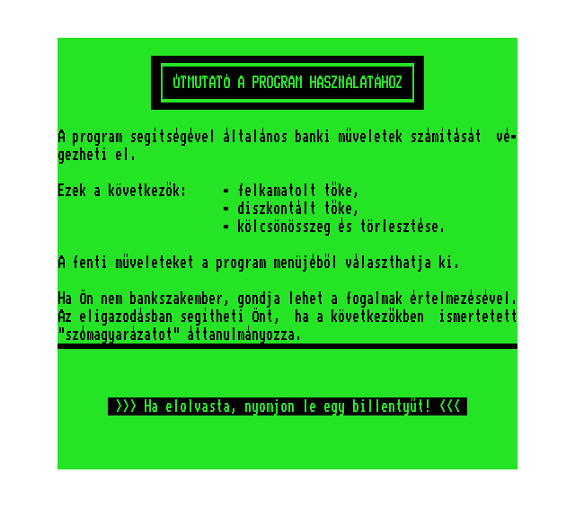 | Banki műveletek Készítette: Tasnádi Róbert (Cyprinus) (Szeged)(1990) Típus: Felhasználói - Információs anyag Fájlok száma: 1 Letöltés: bankimuveletek.zip Leírás: - |
