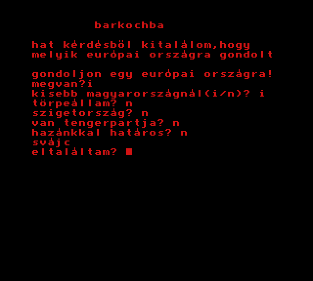 | Barkochba Készítette: nincs megjelölve szerző(????) Típus: Játék - Logikai - Szókitaláló Fájlok száma: 1 Letöltés: barkochba.zip Leírás: A klaszikus szókitalálós játék számítógépes verziója. |