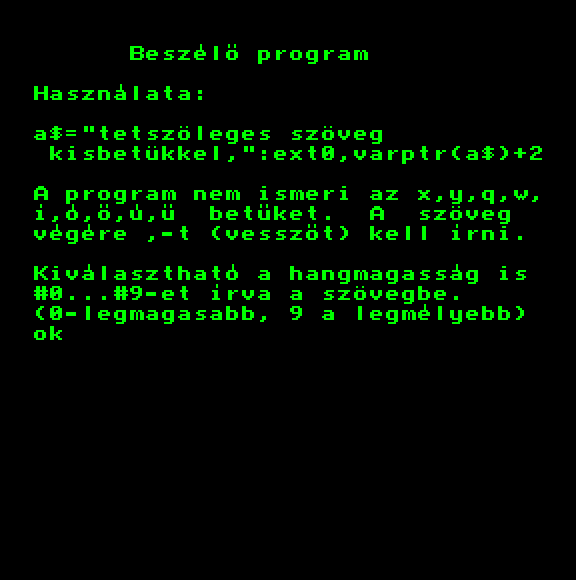 | Beszélő program (f3) Készítette: nincs megjelölve szerző(????) Típus: Felhasználói - Zene/Hang Fájlok száma: 3 Letöltés: beszelo.zip Leírás: Szövegek elmondatása a géppel. |