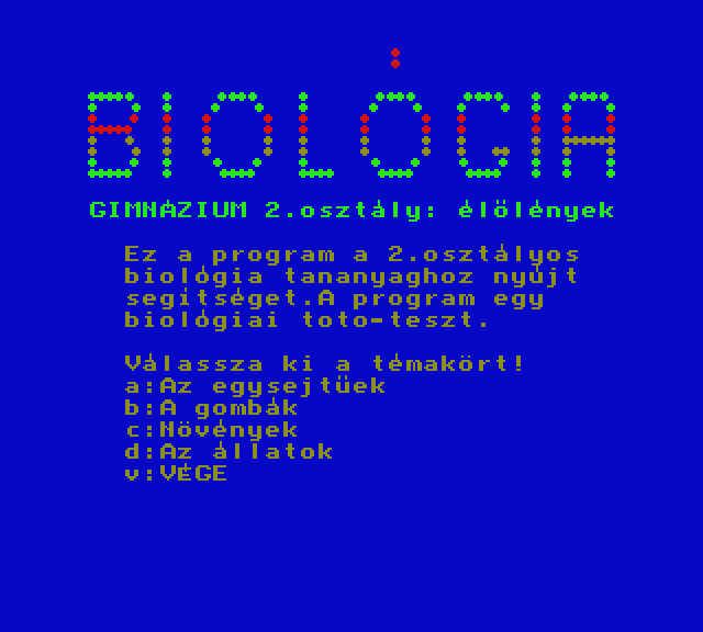 | Biológia - Élőlények Készítette: (Nem ismert)(????) Típus: Oktató - Biológia Fájlok száma: 1 Letöltés: biologia.zip Leírás: Gimnázium 2. osztály biológia |