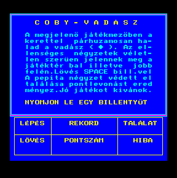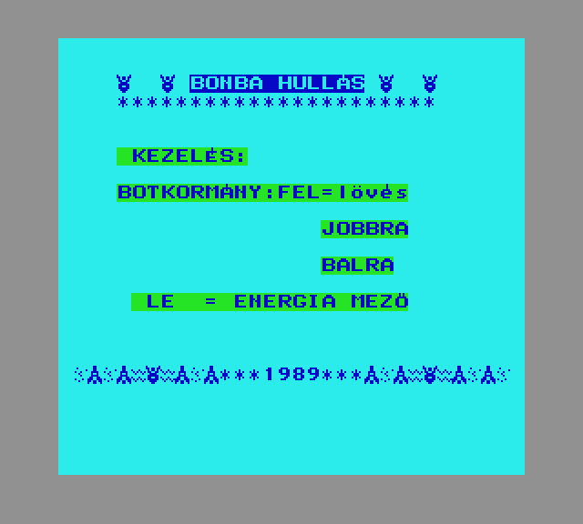 | $ vadász Készítette: Babják Software(1987) Típus: Játék - Ügyességi - Arkanoid típusú Fájlok száma: 1 Letöltés: dvadasz.zip Leírás: A golyó visszaütésével kell a falat lebontani és elérni a dollár jeleket |