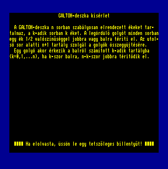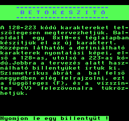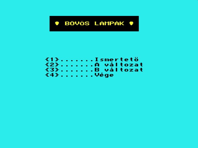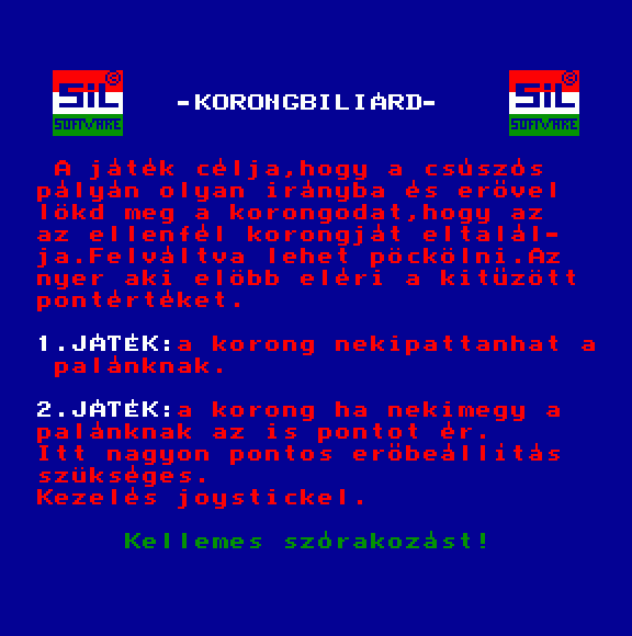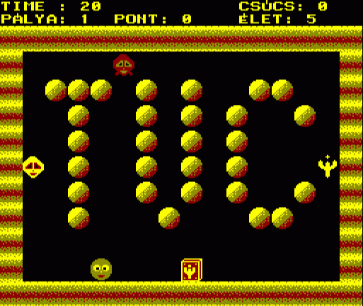 | Varázsgömb (cartridge) Készítette: Bertók Zsolt (Berysoft)(????) Típus: Játék - Ügyességi Fájlok száma: 1 Letöltés: varazsgomb_cart.zip Leírás: A golyóval kell pattogni a pályán. Minnél távolabb pattanunk az energia annál joban fogy. Feltöltése rövid pattogással. |