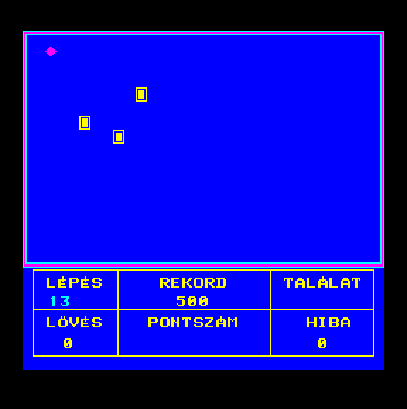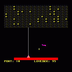 | Vadászat Készítette: Kiss Csaba(1987) Típus: Játék - Ügyességi - Egylövéses Fájlok száma: 1 Letöltés: vadasz.zip Leírás: A csillag mászkál körbe körbe, és ki kell lőni a fekete kockákat. |