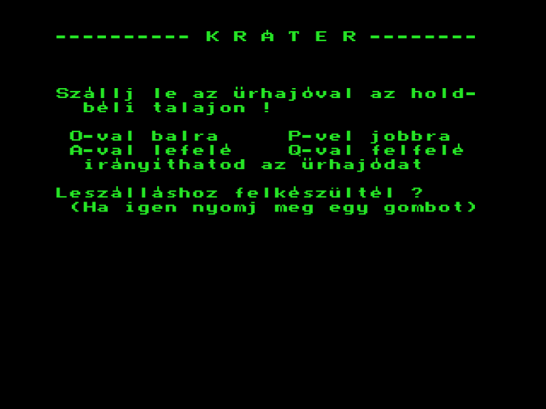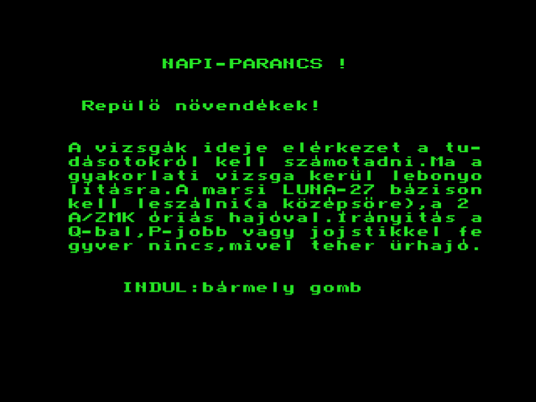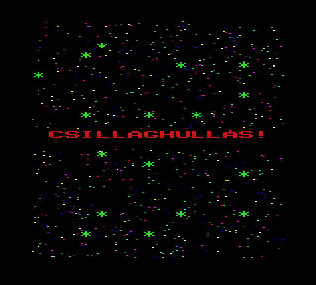 | Ürhajótörés Készítette: Molnár János (Molmix)(????) Típus: Demo - Kép/Animáció Fájlok száma: 1 Letöltés: urhajotores.zip Leírás: Egy történet animációban elmesélve |