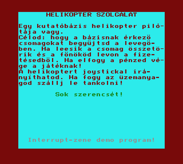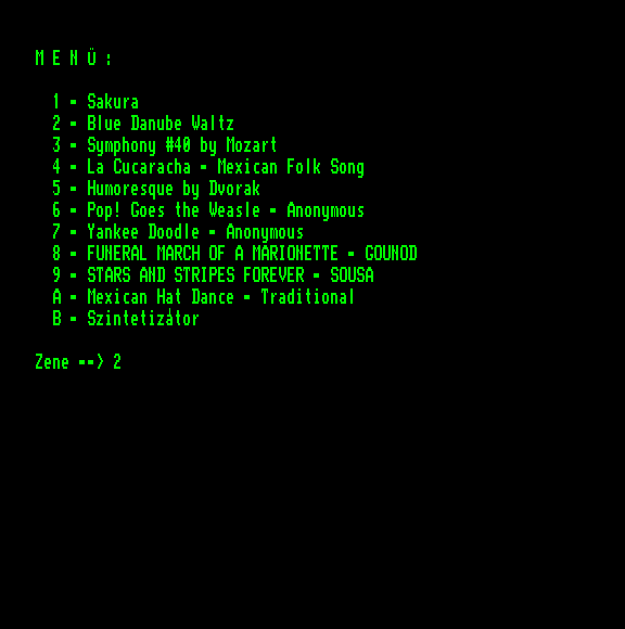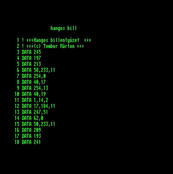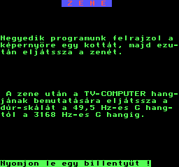 | Basic-független zene Készítette: L.S. (Laza Sándor)(1987) Típus: Felhasználói - Példakód Fájlok száma: 1 Letöltés: bzene.zip Leírás: Basic programban a háttérben futó zenét lehet létrehozni |