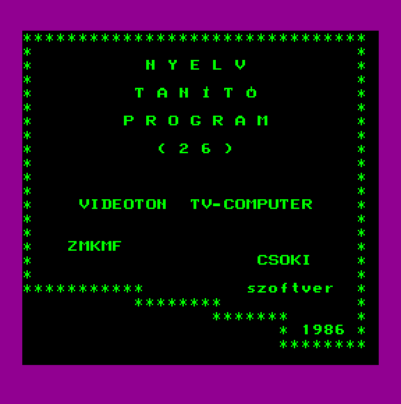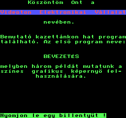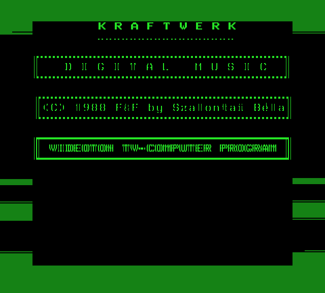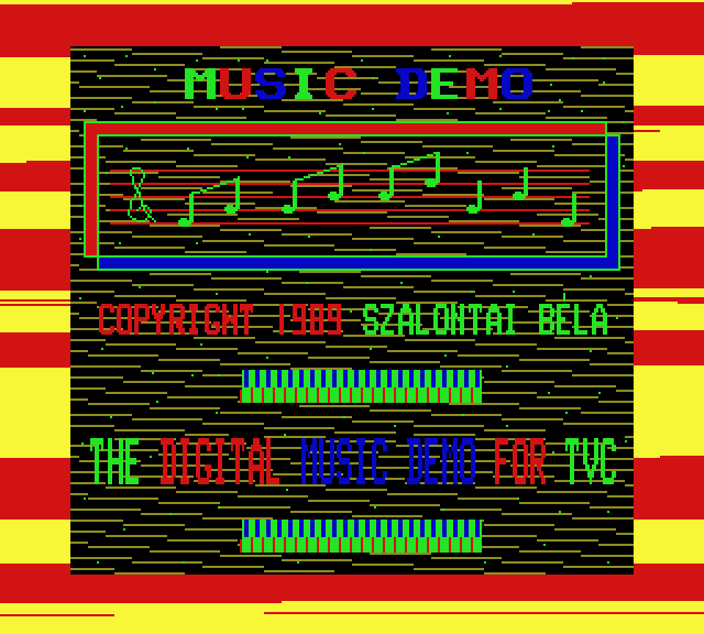 | Videoton Zene (v1) Készítette: Petrovszky József (JózsiSoft) (és Péter)(????) Típus: Demo - Zenei/Hang Fájlok száma: 1 Letöltés: vidizene.zip Leírás: Két klasszikus szám lejátszása. |