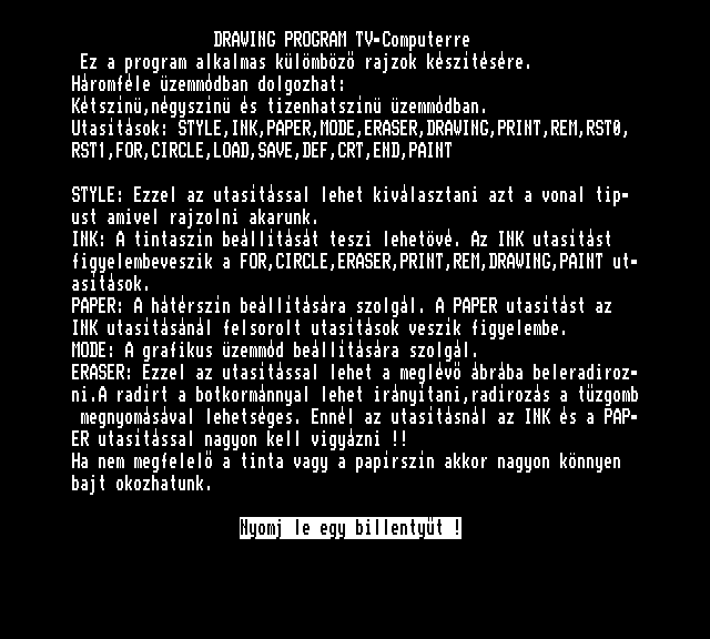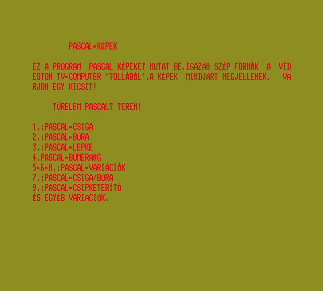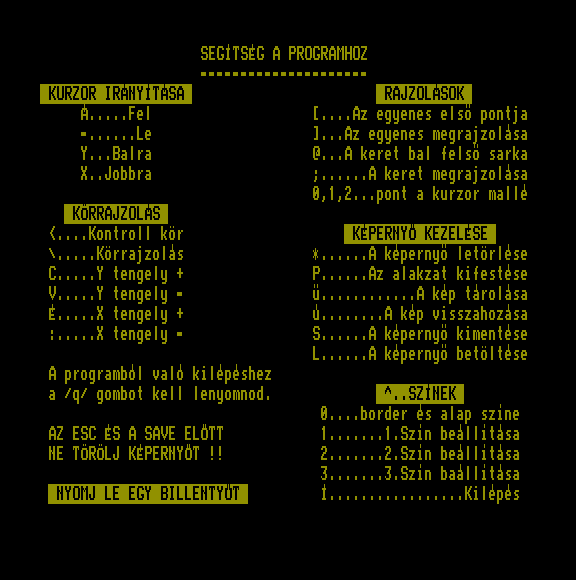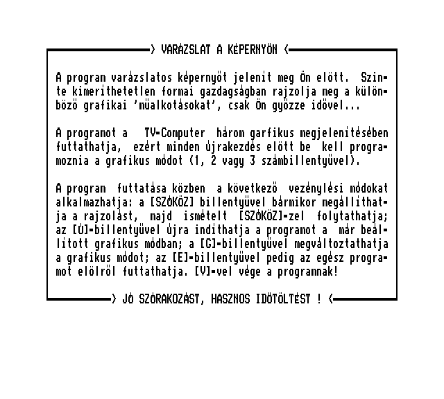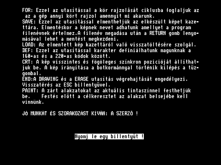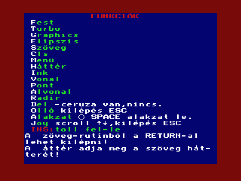 | Varázsecset (v2) Készítette: Novotrade(1988) Típus: Felhasználói - Rajzoló Fájlok száma: 1 Letöltés: varazsecsetv2.zip Leírás: rajzprogram, az egyik legleterjedtebb volt |