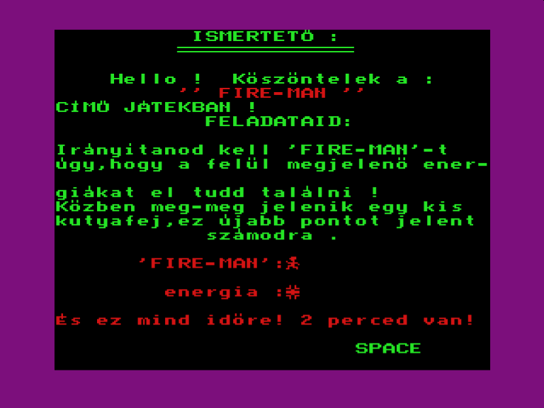 | Antiriad Készítette: Vindics Isván (STV)(1986) Típus: Játék - Ügyességi - Platformer Fájlok száma: 1 Letöltés: antiriad.zip Leírás: Klasszikus spectrum konverzió, kicsit több színnel. (?) |