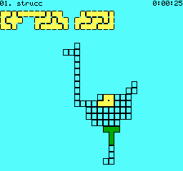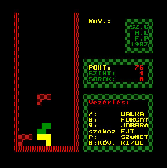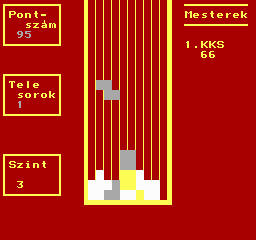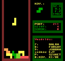 | Walltris Készítette: Vindics Isván (STV)(????) Típus: Játék - Ügyességi - Tetris Fájlok száma: 1 Letöltés: walltris.zip Leírás: A falról csorog be a sikidom, és ha megtelt egy sor vagy oszlop, eltűnik. |
