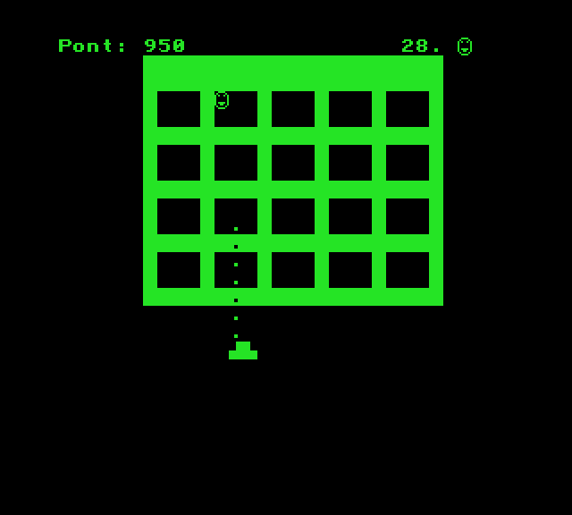 | Űrcsata (v1) (aka. Űrjáték) Készítette: nincs megjelölve szerző(????) Típus: Játék - Ügyességi - Arkanoid típusú Fájlok száma: 1 Letöltés: urjatek.zip Leírás: Ez egy gyenge konverzió, megvalósítás. Ha nem követed pontosan a labdát, utól már nem éred. :) |