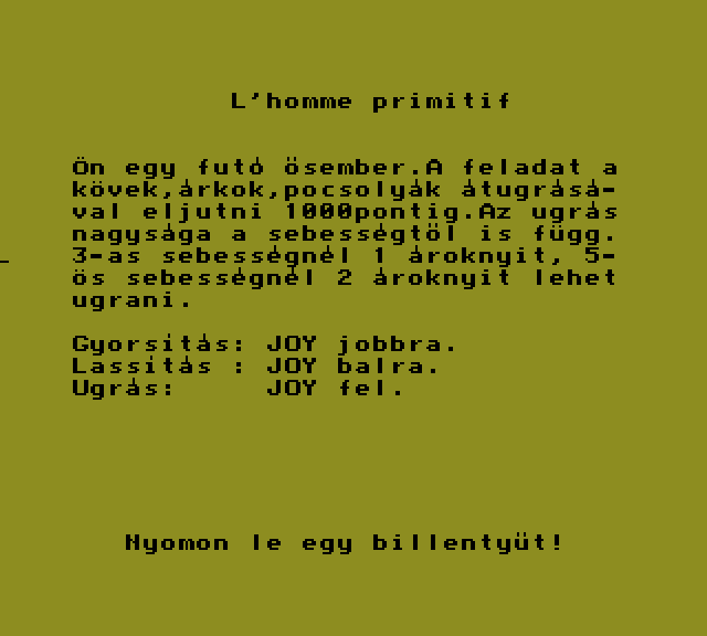 | Vili a bányász (Joy) Készítette: Vindics Isván (STV)(1991) Típus: Játék - Ügyességi - Platformer Fájlok száma: 1 Letöltés: viliabanyaszjoy.zip Leírás: Manic Minner átirat, természetsen Primo közbeiktatásával jött Spectrumról. |