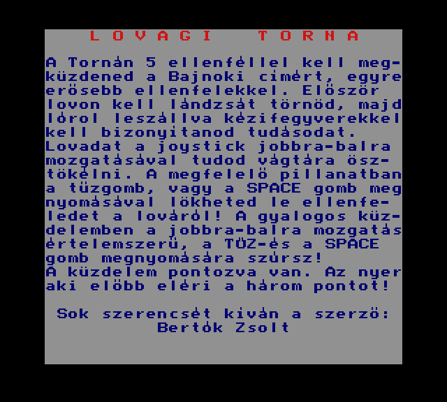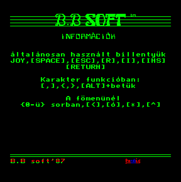 | Barbár Készítette: Bagi László (Cápasoft)(????) Típus: Játék - Ügyességi - Lövöldözős Fájlok száma: 1 Letöltés: barbar.zip Leírás: - |