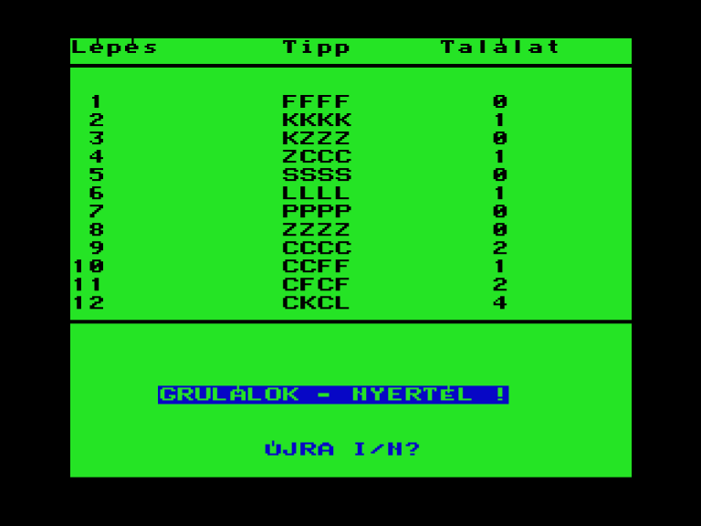 | Áttörés (v1) (f2) Készítette: Bit & Guy(????) Típus: Játék - Ügyességi - Defender típusú Fájlok száma: 2 Letöltés: attores.zip Leírás: Skramble klón. |