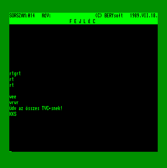 | Volleyball (cartridge) Készítette: Bertók Zsolt (Berysoft)(1990) Típus: Játék - Ügyességi - Sport Fájlok száma: 1 Letöltés: volleyball_cart.zip Leírás: PC-ről még az EGA korszakból lehet ismerős. |