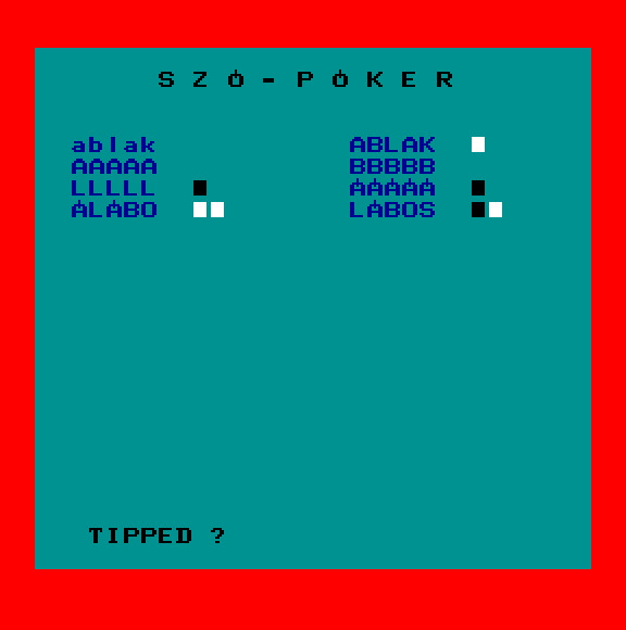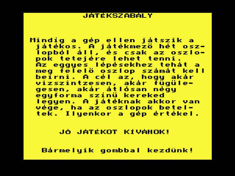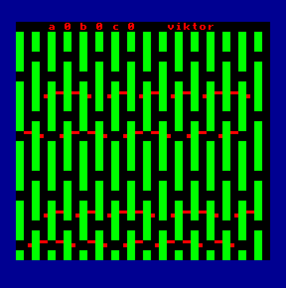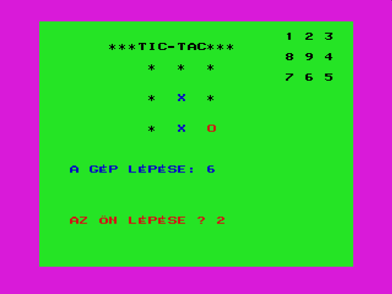 | Amőba (v2) Készítette: Videoton(????) Típus: Játék - Logikai - Táblás Fájlok száma: 1 Letöltés: amobav2.zip Leírás: Amőba játék, ez a demó kazetta utolsó programja. |