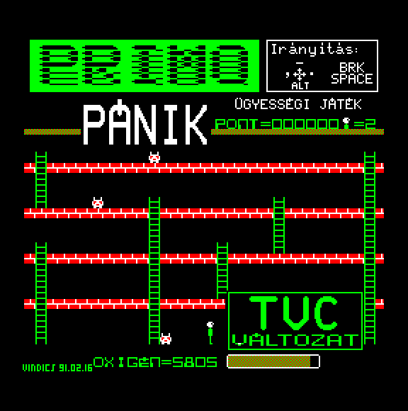 | Vili a bányász Készítette: Vindics Isván (STV)(1991) Típus: Játék - Ügyességi - Platformer Fájlok száma: 1 Letöltés: viliabanyasz.zip Leírás: Manic Minner átirat, természetsen Primo közbeiktatásával jött Spectrumról. |