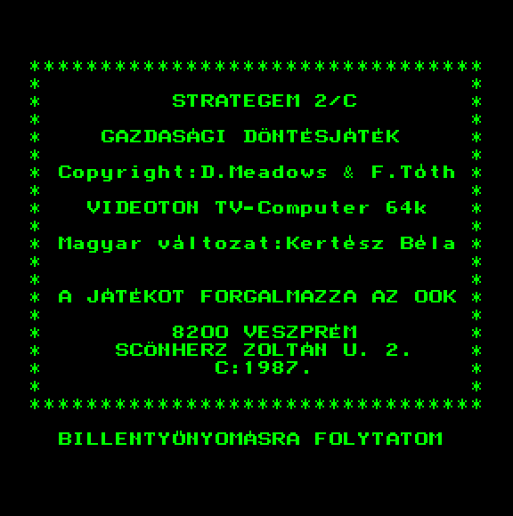 | War in 2100 (f2) Készítette: Kocsis Árpád (TVCM)(????) Típus: Játék - Stratégia Fájlok száma: 2 Letöltés: warin2100.zip Leírás: Leírás: TVC újság 15.szám 5.oldal |