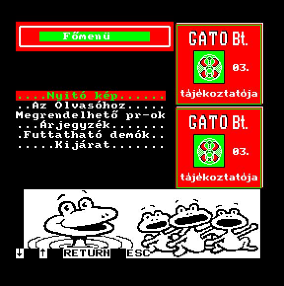 | Újság 03 Készítette: Gutbrod András (Gato Bt.)(1993) Típus: Felhasználói - Lemezújság Fájlok száma: (Unknown) Letöltés: demo03.zip Leírás: A Gato Bt. újságja, teljes lemez, a rajta található demó programok külön belinkelve |