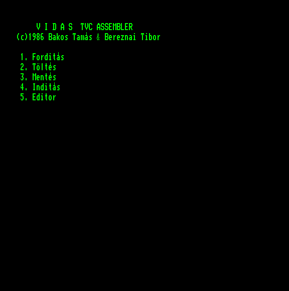 | VIDAS Tvc assembler Készítette: Bakos Tamás & Bereznai Tibor(1986) Típus: Felhasználói - Programnyelv Fájlok száma: 1 Letöltés: vidas64.zip Leírás: Futtatása: ext0:run Azért jó volna tudni még ezt azt róla. |