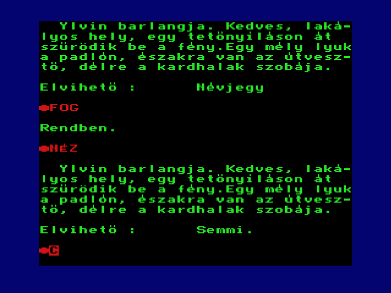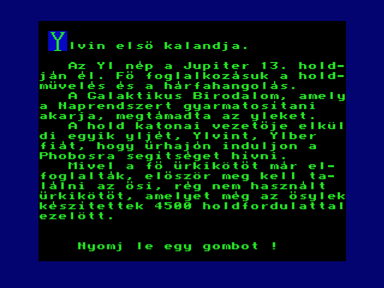 | Ylvin első kalandja Készítette: L.ZS.(????) Típus: Játék - Szöveges kaland Fájlok száma: 1 Letöltés: ylvin.zip Leírás: - |