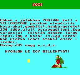 | Yogi Készítette: Agilar(????) Típus: Játék - Ügyességi Fájlok száma: 1 Letöltés: yogi.zip Leírás: nem is tudom hova sorolja. Macilaci egy repülő földdarabon ügyködik |