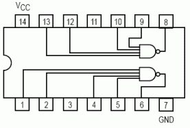 az 2 db 4 bemenetű NAND-ot tartalmaz, így kellett még egy 74LS00, hogy összekapuzzam őket. Igaziból nem ért nagy veszteség, van egy szatyor ruszki TTL-em .