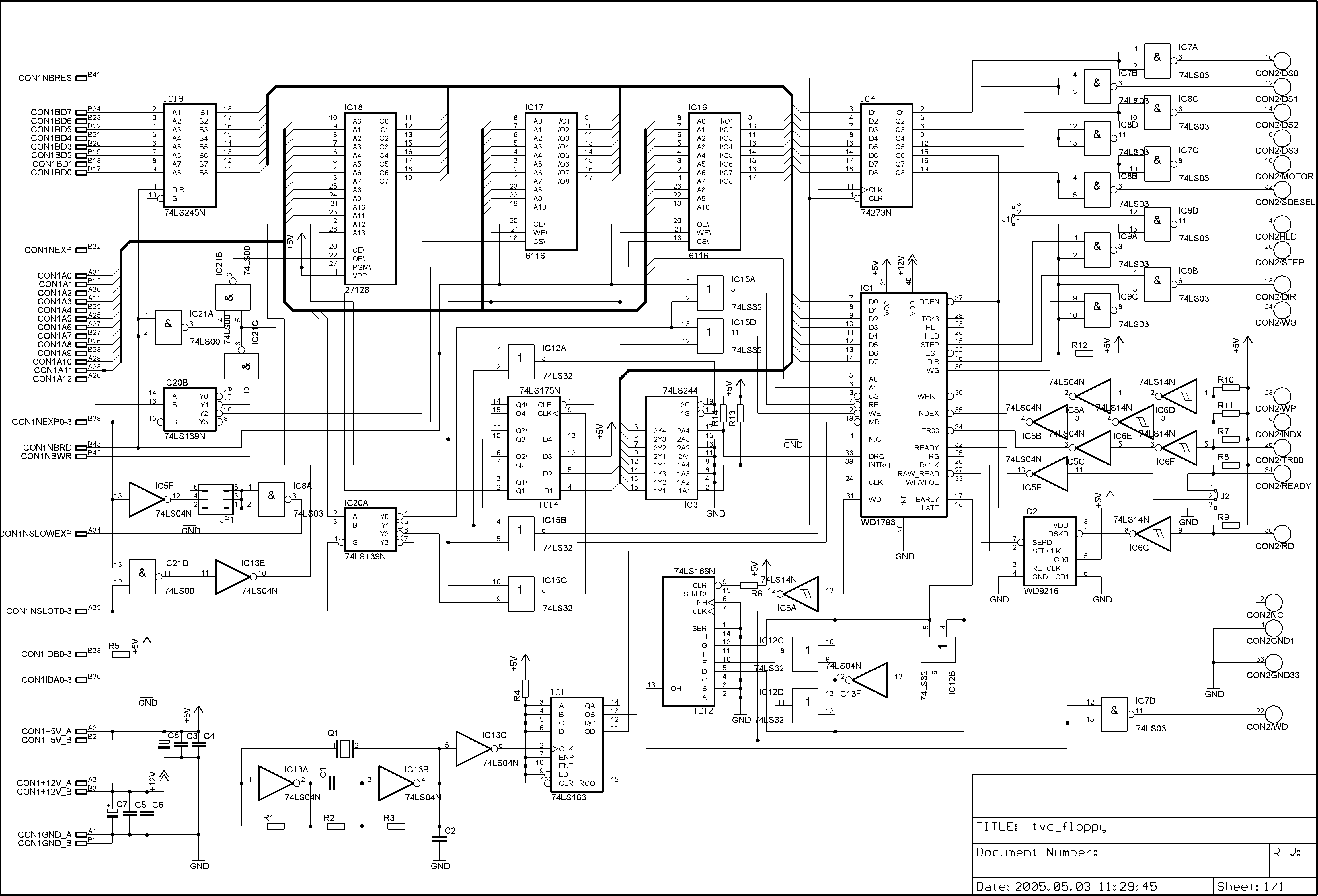 A TVC-hez eredetileg kétféle floppy kártya létezett: egy UPM kompatíbilis, valamint egy VT-DOS kompatíbilis. A két kártya hardver szempontjából teljesen megegyezett, csak a rajtuk található EPROM memóriák tartalma tért el, a két különböző operációs rendszer fájlkezelésének megfelelően. A honlapon található eredeti kapcsolási rajz alapján (pontosabban egy eredeti kapcsolási rajz fénymásolata, amit annak idején kézzel írt megjegyzésekkel kiegészítettek, majd később beszkenneltek és több TIFF formátumú fájlban tároltak), sikerült rekonstruálni a kártya áramköri rajzát: