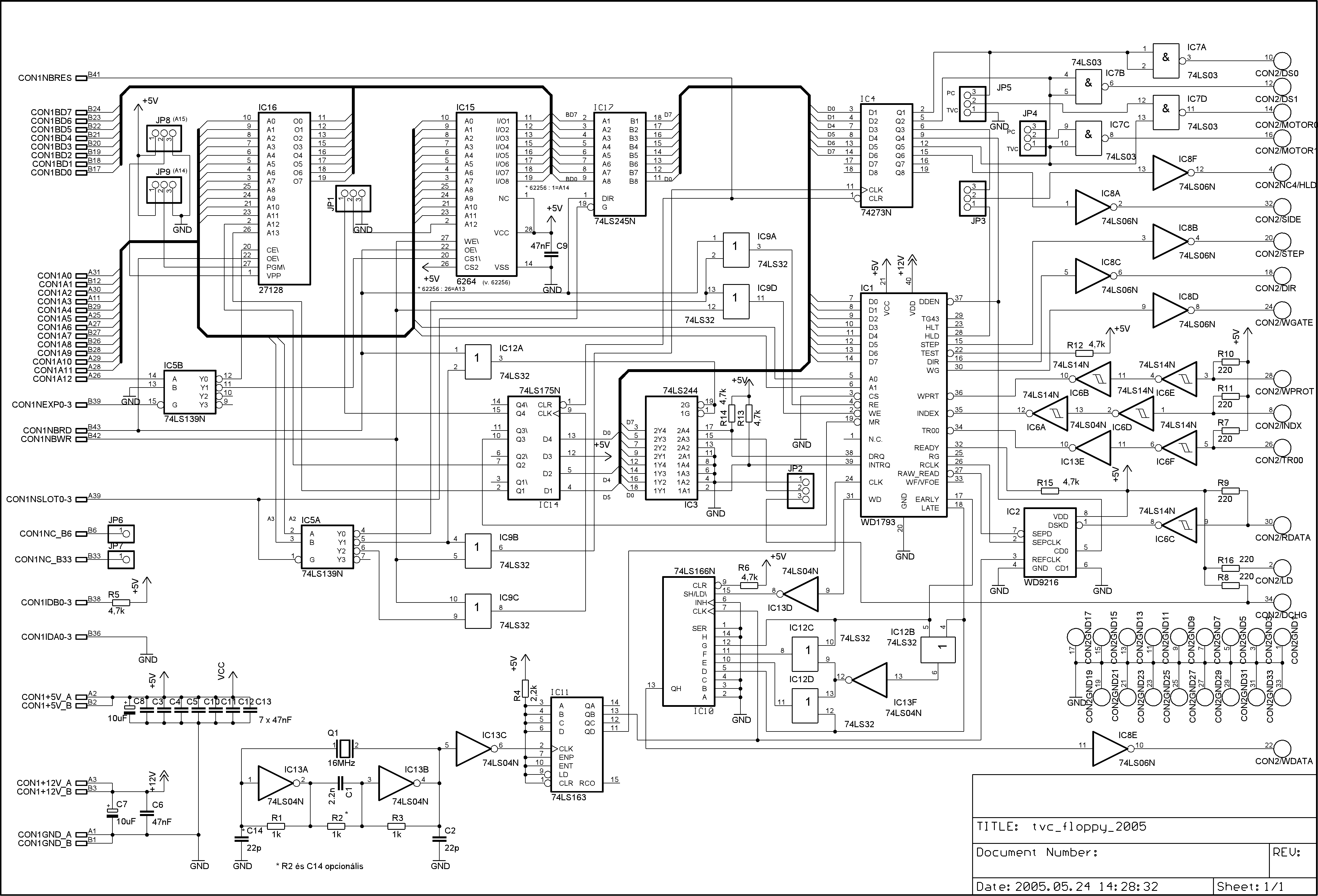 FloppySrc.zip -kapcsolási rajzok Eagle 4.09-hez, és NYÁK-tervek FreePCB-hez