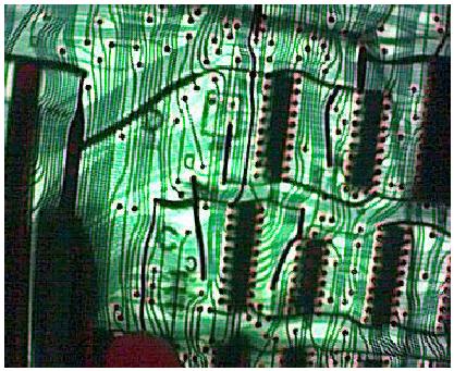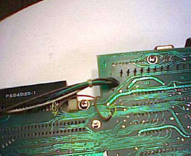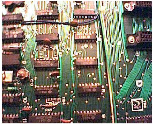 A DA7-es adatvonalat fóliavágás nélkül, az R34-es ellenállásnak a 74157-es IC-re csatlakozó lábának, a panelból való kiforrasztásával tudjuk megbontani. Az extra IC-nk 12-es lábáról jövő vezetéket a panelba a kiforrasztott ellenállásláb helyére kell bekötni. A 13-as IC-lábról jövő vezetéket pedig a kiforrasztott ellenálláslábhoz, a levegőben kell hozzákötni, és zsugorcsővel szigetelni ezt a forrasztást. Az extra IC 5-ös 6-os lábáról jövő két vezetéket a G10-es IC-nek az 1-es, és 3-as lábára kell bekötnünk, a sorrend lényegtelen. (Gyárilag nincs előkészítve, közvetlenül az IC-lábakhoz kell forrasztani.)