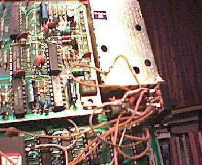 Az előkészített kapcsolót a helyére be kell forrasztani a modulátor oldalánál, vigyázva, hogy a többi alkatrész lábához ne érjen hozzá. (Egy elektrolit kondenzátor negatív lába van ott "rossz helyen", azt célszerű elhajlítani az útból.) A Kapcsoló szélső érintkezőire menő vezeték egyikét testre, (pl. a modulátor háza) a másikat a +5V-os tápfeszültségre (pl. szomszédos IC 14-es lába) kell kötni.