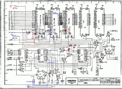 A fenti kapcsolási-rajz részleteket összehasonlítva látható, hogy a HBA-2 gépben a DA7-es memóriacímző vonal jele két másik (lap címző) jellel "összekapuzva" jut a memóriára. Ezt a kiegészítő áramkört nekünk is be kell építenünk, amennyiben HBA panelünk van, és VTDOS üzemmódot akarunk a floppy-val használni. Az átalakításhoz egy 7402 típusú (TTL) IC-re van szükségünk, amelyet előkészítve építünk be.