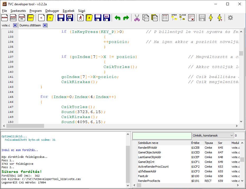 Egy Z80-as processzorral rendelkező gépekhez készült C fordító, minimális TVC támogatással.