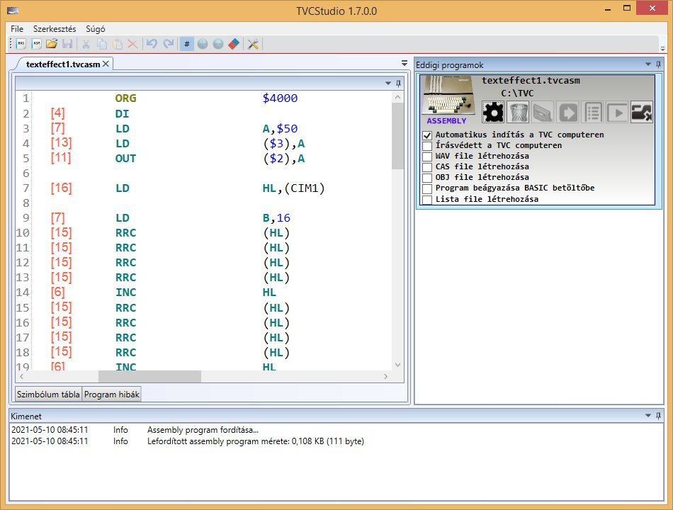 A TVCStudio egy grafikus fejlesztőkörnyezet, mely támogatja a programfejlesztést Videoton TV Computerre Z80 assembly, valamint BASIC programozási nyelveken.